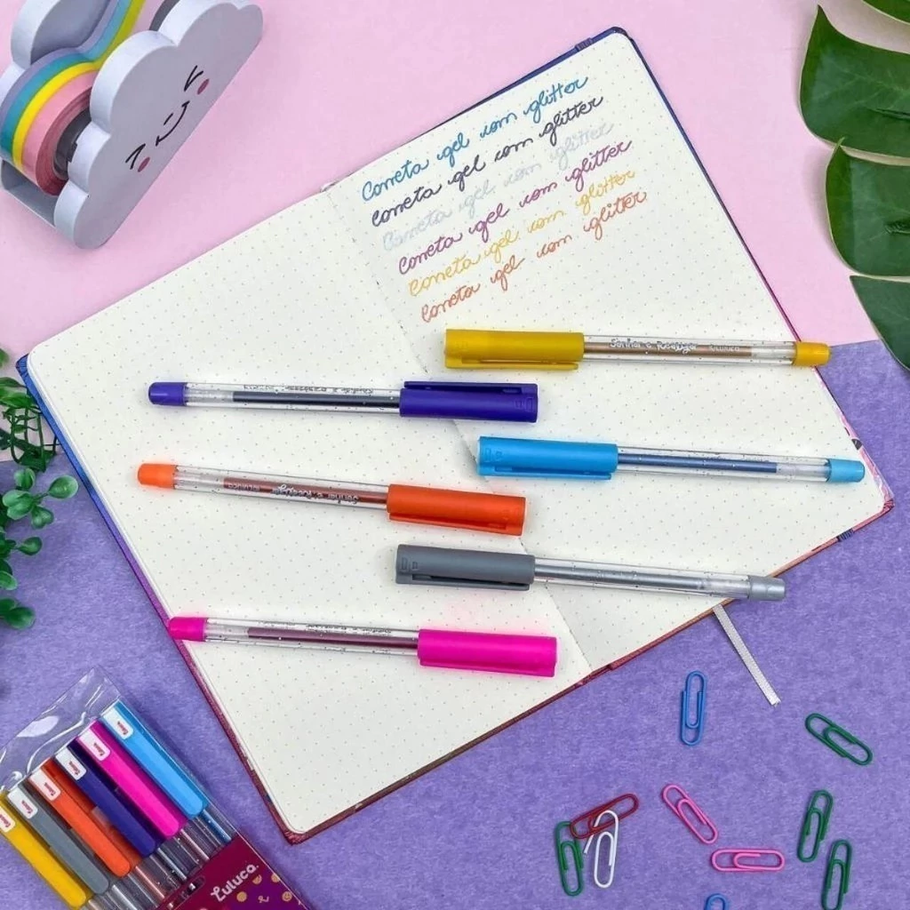 Transforme seus momentos de escrita com o Kit Caneta Gel Com Glitter Rebecca Bonbon! Este kit é perfeito para quem deseja adicionar cores vibrantes e um toque de elegância às suas anotações, desenhos ou projetos criativos.