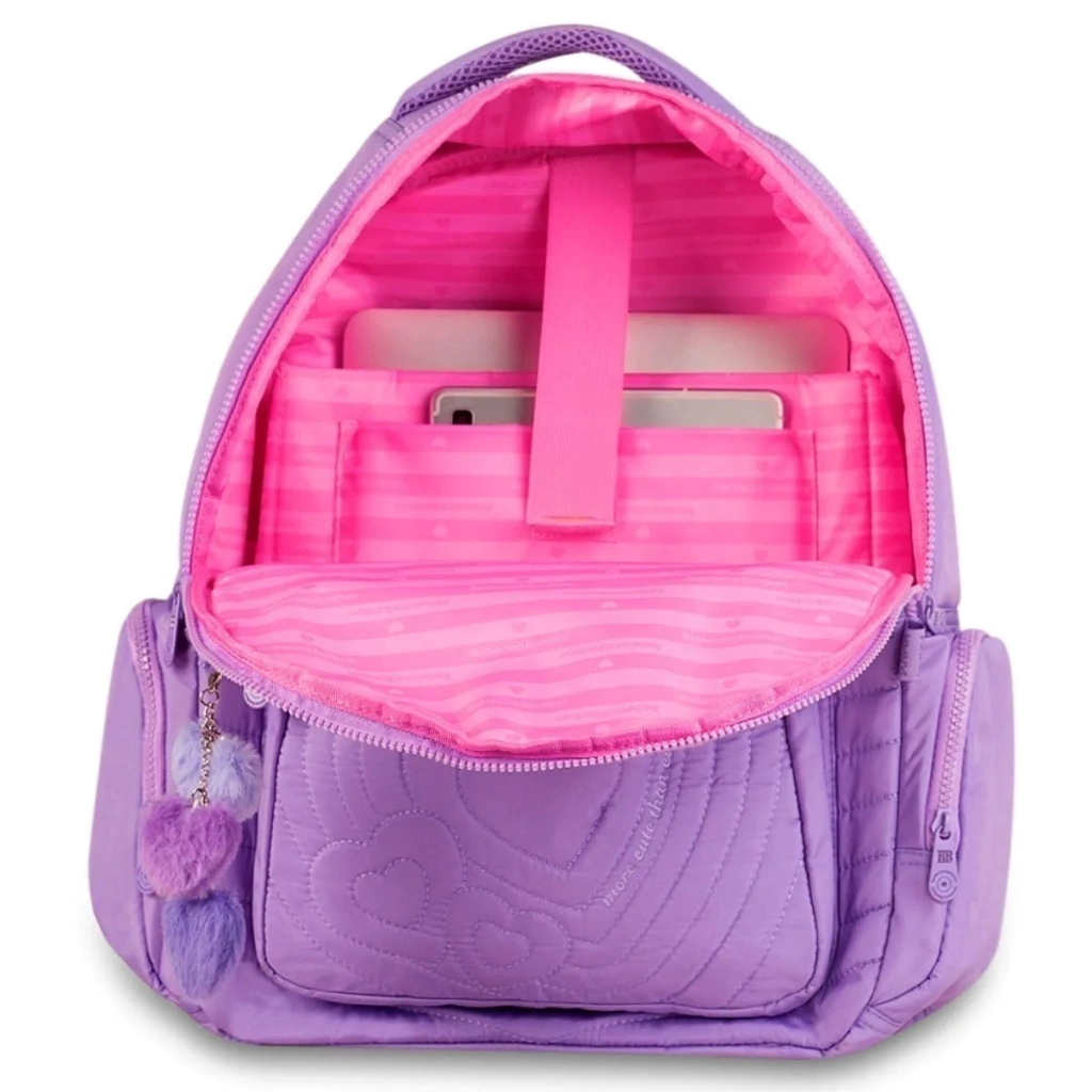 Inclui um chaveiro de pompom triplo que adiciona um toque especial. A Mochila Rebecca Bonbon é perfeita para arrasar na volta às aulas!